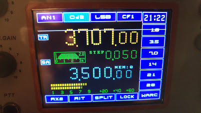 Radio już spięte z kompem ,,po całości". Jest CAT, możliwość korzystania z makr CW i SSB, nagrywania sygnału z pasma i jego retransmisji. Pozostaje znalezienie obudowy podchodzącej wymiarami i zapakowanie w środek. Nie wiem czemu wlutowanie LED-ów na wyściach linii CW, PTT powoduje ich zwarcie do masy - LED-y świecą niemal ciągle i oczywiście gubię sygnały, gdy wyjście linii dostaje przejścia do masy. Na razie więc LED-ów nie wlutowałem, ale myślę, ze ten problem jest do przejścia - może trzeba dokładniej dobrać warunki pracy tranzystorów kluczujących. Sygnały z linii CW i PTT interfejsu zwierają do masy odpowiednie nóżki 2 transoptorów na płytce. Projekt płytki transoptorów zamieściłem w którymś z wcześniejszych postów. Sygnał wyjścia m.cz. z Husarka na kartę muzyczną pobieram z nogi 7 układu U1 na płytce ARW (przez C= 220nF), a sygnał z karty muzycznej wchodzi do Husarka w punkcie MIC płytki homodyny (przez C=220nF). Dzięki temu omijam tor m.cz. nadajnika kształtujący charakterystykę sygnału, a retransmitowany z kompa sygnał m.cz. jest naturalny i odpowiada temu, co nagrało się z pasma. Poziomy są wystarczające, ustawienia karty muzycznej dają możliwość zabawy w niuanse i unikanie przesterowań - jest mały zapas sygnałów. Finał coraz bliżej - pozostało umocować głośnik i zrobić na górnej lub dolnej części obudowy maskownicę pod niego. To będzie chyba ostatnia czynność przed skręceniem obudowy. No i oczywiście od kilku dni rzucam do skarbonki na nowy wyświetlacz - nietety pozioma linia nie ma zamiaru zniknąć.