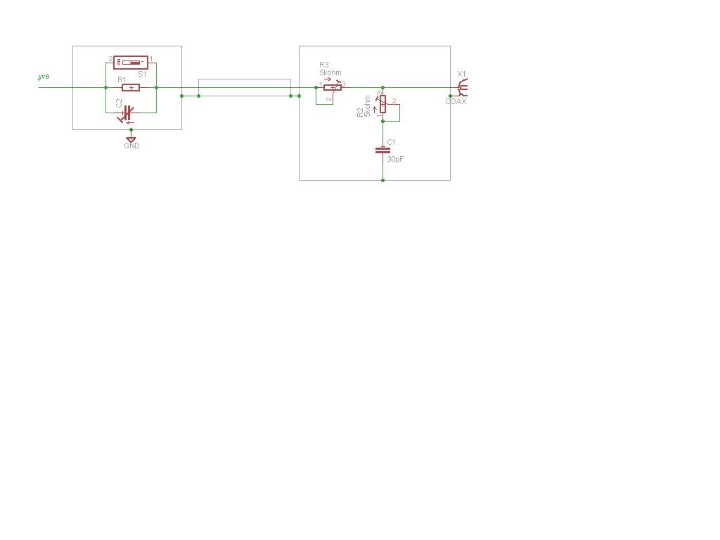 W obudowie przy oscyloskopie są dwa potencjometry montażowe 5kohm oraz kondensator 30pF. Ich wartości wziąłem z fabrycznej sondy. Z tym że wykonałem też drugą sondę w której nie ma tych elementów, przwewód zarobiony wprost do wtyczki BNC i okazuje się, że tak samo dobrze się spisuje sonda więc zastanawiam się nad sensownością ich istnienia w tym wykonaniu. Być może w zakresie wyższych częstotliwości będzie to miało znaczenie ale dla mnie do tych 50-60 wystarczająco dobrze.