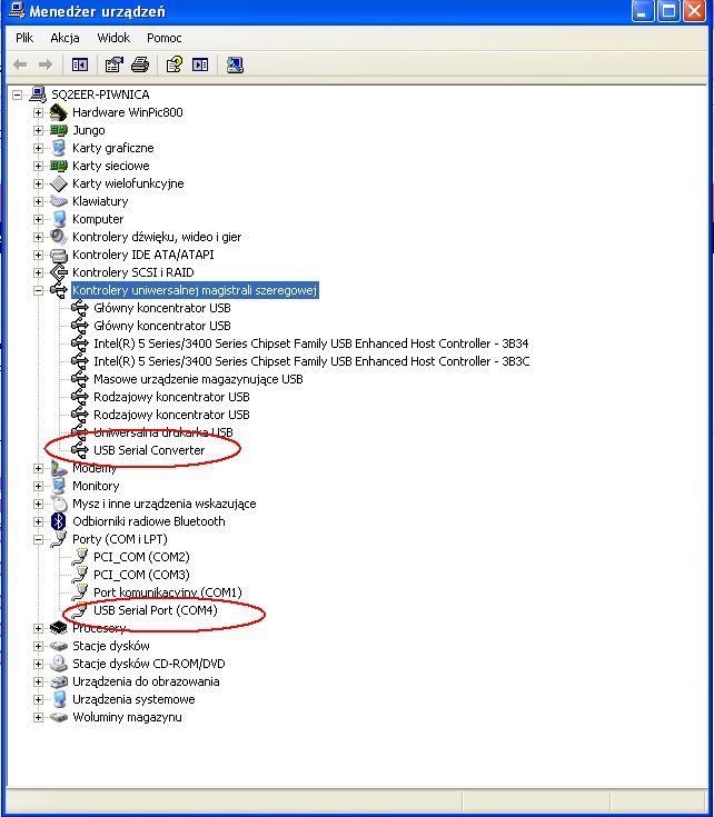 1. Sprawdź czy zainstalowałeś sterownik programatora - po podłączeniu go do komputera powinien być widoczny w menadżerze urządzeń. Zaznaczyłem czerwonymi elipsami gdzie u mnie jest widoczny mój programator