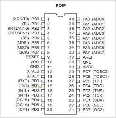 teraz Atmegowa "zerówka" dla tych , których przeraża obudowa Atmegi32 z 40-toma wyprowadzeniami i którzy nie są w stanie ogarnąć swoim umysłem o co chodzi w moich dotychczasowych lekcjach. Powinienem to wcześniej napisać, ale powiem wam jedno: NIE PODDAWAJCIE SIĘ. Atmega16/32/64 to bardzo przyjazny pająk.