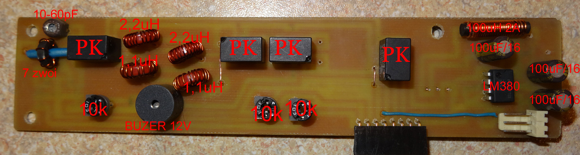 Niebieskie 1kV ... i ten sam układ, te same cewki i płytka, ale kondensatory zamienione na mikowe 0.5kV 5% (10 razy droższe).