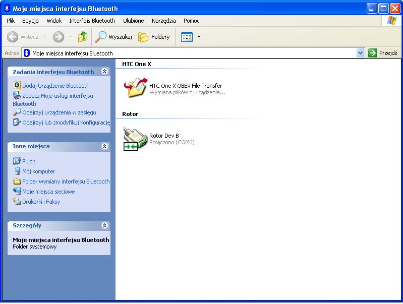 Obecnie po zakupie tego modułu zanim podłączymy go do sterownika, należy zrobić to ręcznie. Moduł świeżo po zakupie lub z nieznanymi parametrami należy podłączyć wpierw do komputera przez RS232 i wydać mu polecenie zmiany prędkości z dowolnego terminala. Ja prócz tego zmieniłem mu nazwę tak aby urządzenia bluetooth widziały go jako "Rotor"