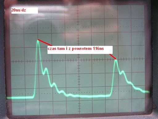 Wystarczy odczytać z oscyloskopu czas w ns między impulsem padającej i odbitej i już wiemy w jakim czasie impuls pokonał drogę tam i z powrotem.