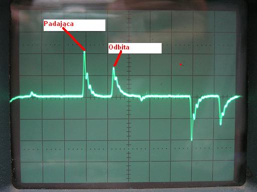 Na oscyloskopie zobaczymy impulsy padającej oraz nieco dalej odbitej.