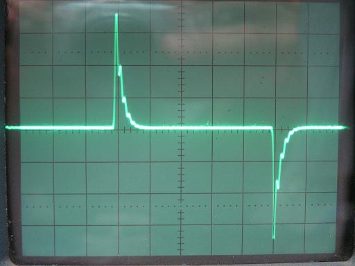 Do wejścia oscyloskopu wpinamy trójnik BNC. Pod jedno wejście trójnika doprowadzamy sygnał z generatora fali prostokątnej 1MHz (albo lepiej 1MHz ale krótkie szpileczki czyli z niewielkim wypełnieniem). Generator można zrobić na kwarcu i bramkach a gdy chcemy szpileczki to użyjmy dodatkowo układu 74121.