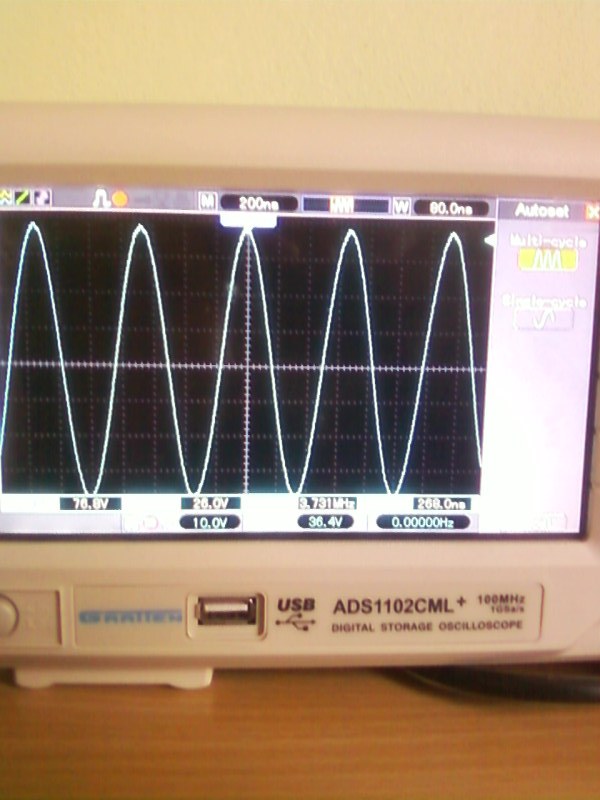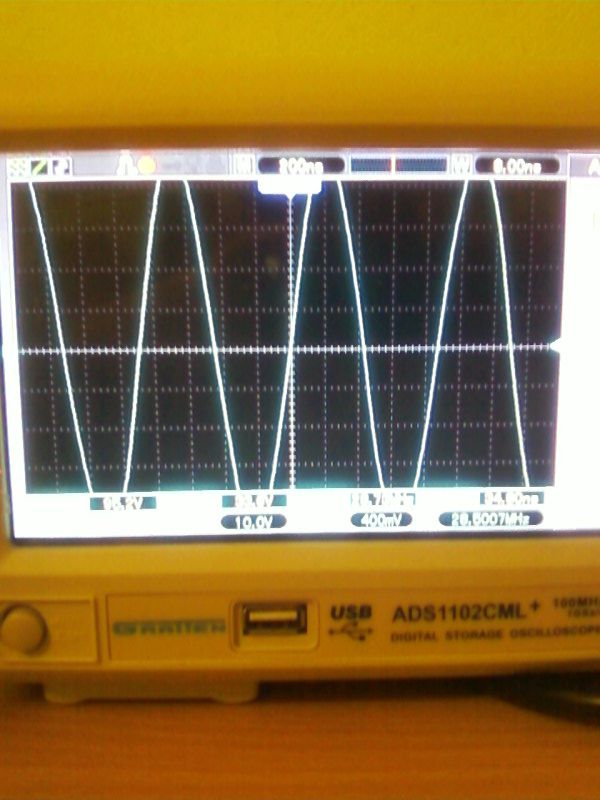 rąd Q5 Q6 1,5A,napięcie na wy Tx przy włączonej antenie 76,8Vpp co w przeliczeniu daje 14,7W. Moc dostarczona do stopnia końcowego około 17,5W. Wyjściowa 14,7, wychodzi sprawność ponad 80 %.( jak dobrze obliczyłem)To jeszcze nie koniec.Jeszcze są możliwości tylko muszę zwiększyć radiator. Ponieważ Q3 Q4 wyparowały zastosowałem tranzystory BCX5610.Mają podobną charakterystykę.