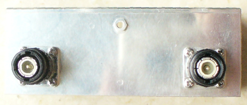Dodaję zdjęcia przystawki służącej do pomiaru kwarcowego filtru. "Przyrząd" wykonany jest z aluminiowej rury o przekroju kwadratu (wymiary: 35 mm x 35 mm i grubości ścianek 2 mm) . Połączenie z NWT7 następuje na samych złączach typu BNC. Całość jest posrebrzana (z nadmiaru gorliwości ). Płytka drukowana umieszczona wewnątrz jest na małych prowadnicach aby można było ją ewentualnie wymienić na jakąkolwiek inną, pasującą do różnych typów badanych filtrów. Boki rury są "zaślepione" przykręcaną aluminiową blachą o grubości 4 mm (by łatwo było zrobić w niej otwory).
