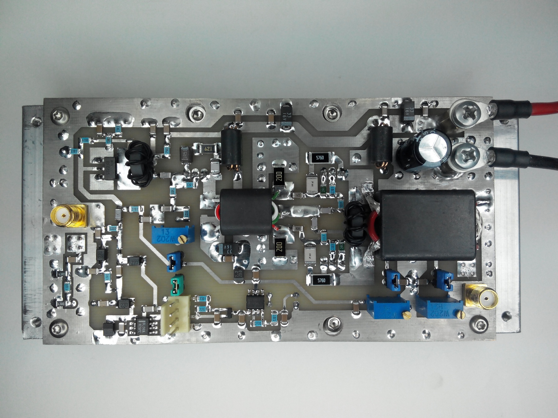 Maciej byłbym ostrożny z tą publikacją. Czy na pewno ten wzmacniacz chodzi na 50 MHz? Układowo on nie różni się niczym od swego pierwowzoru - czyli tzw. kosmetyka. Mam wrażenie, że kilka kondensatorów i oporników powinno mieć inne wartości, aby ten wzmacniacz ruszył jak trzeba na 6 m. (DL4, R16, C19., C35, C36, R26, R27, C44). Nie mówiąc już o tranzystorach drivera i stopnia mocy. Krótko mówiąc - cześć i chwała za inicjatywę, ale nad tym, aby to chodziło na 6 m. to chyba trzeba posiedzieć.