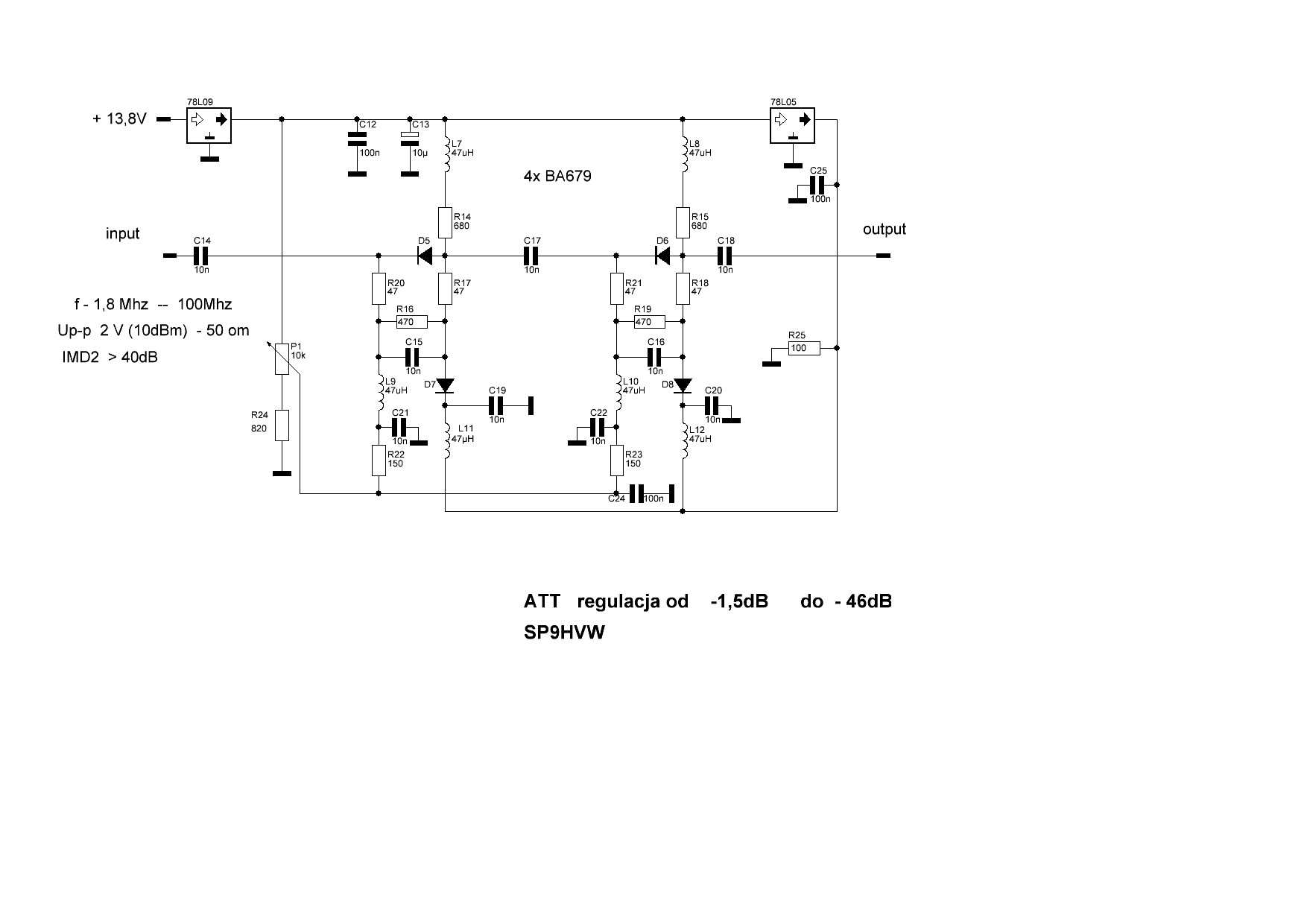 Uruchomiony tor RX z płynną regulacją ATT na diodach PIN BA679 regulacja od -1,5 dB do -46 dB. Dodatkowo zastosowałem wzmacniacz LM4950 - sterowany przez trafo 1:1 z dicsovery, z jednego toru idzie na głośnik wewnętrzny z możliwością przełączenia na zewnętrzny a drugi tor na słuchawki z możliwością