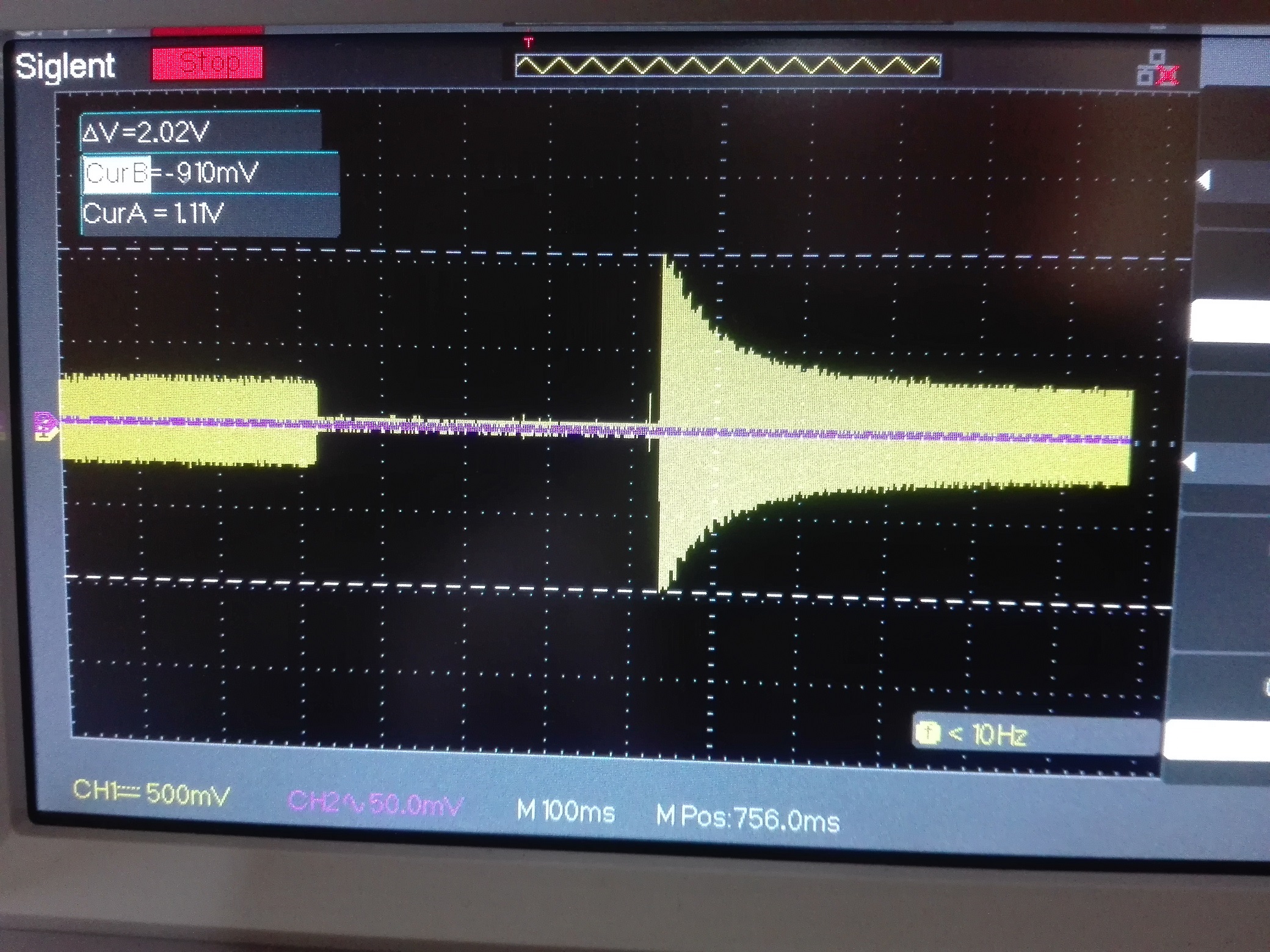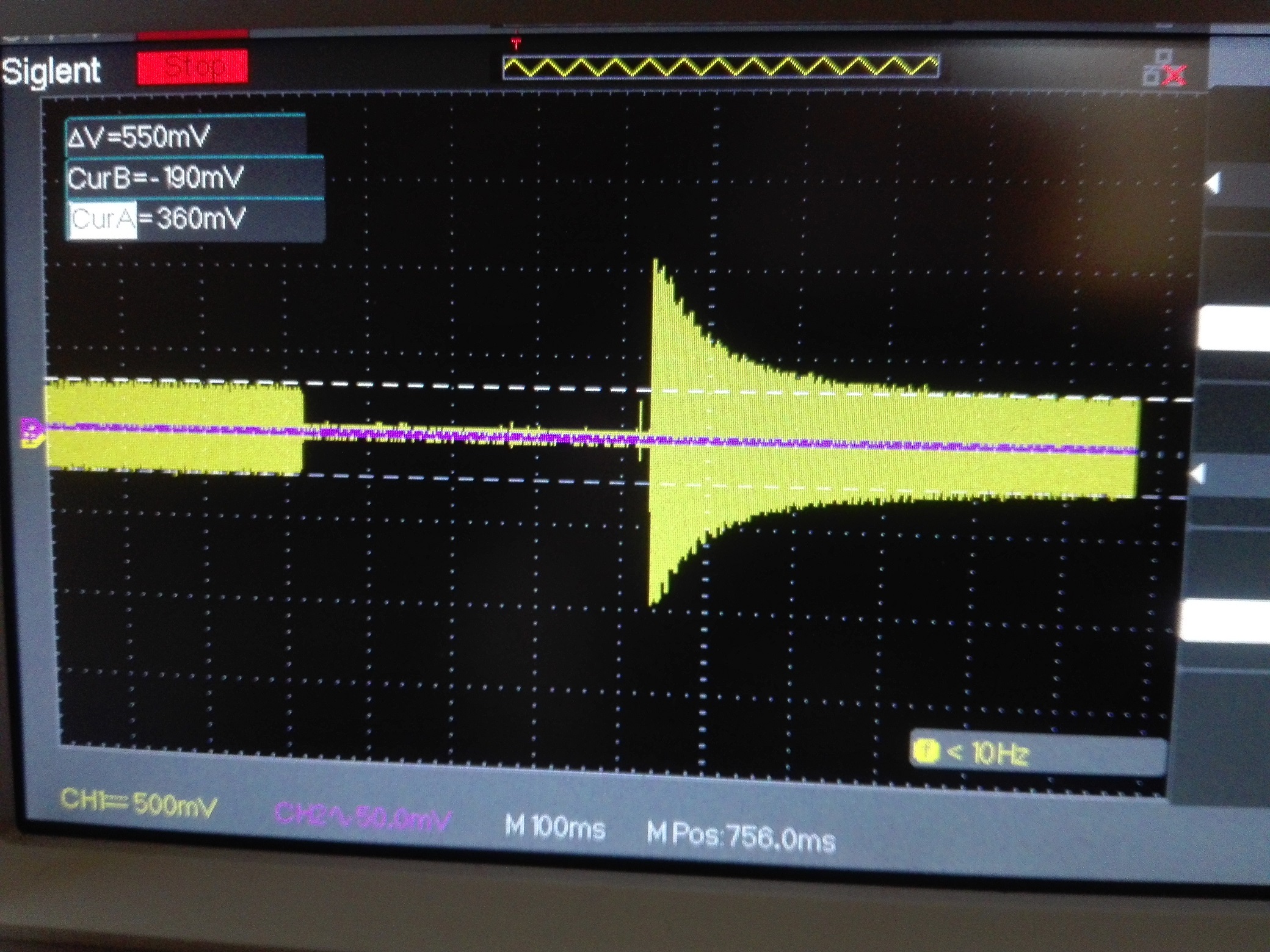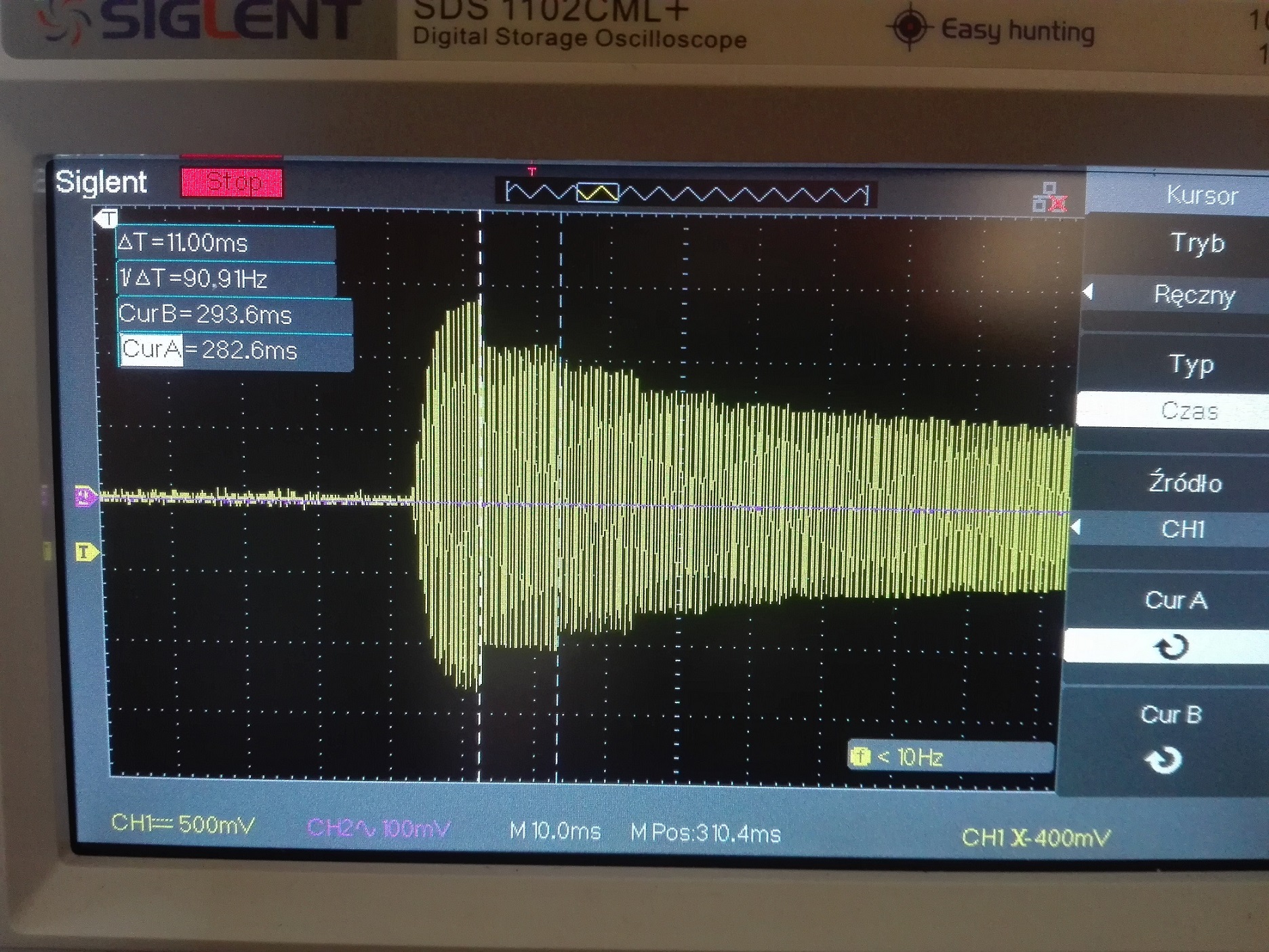 Widać powyżej, że regulacja odbywa się schodkowo, poniżej pomiar czasu trwania schodka regulacji