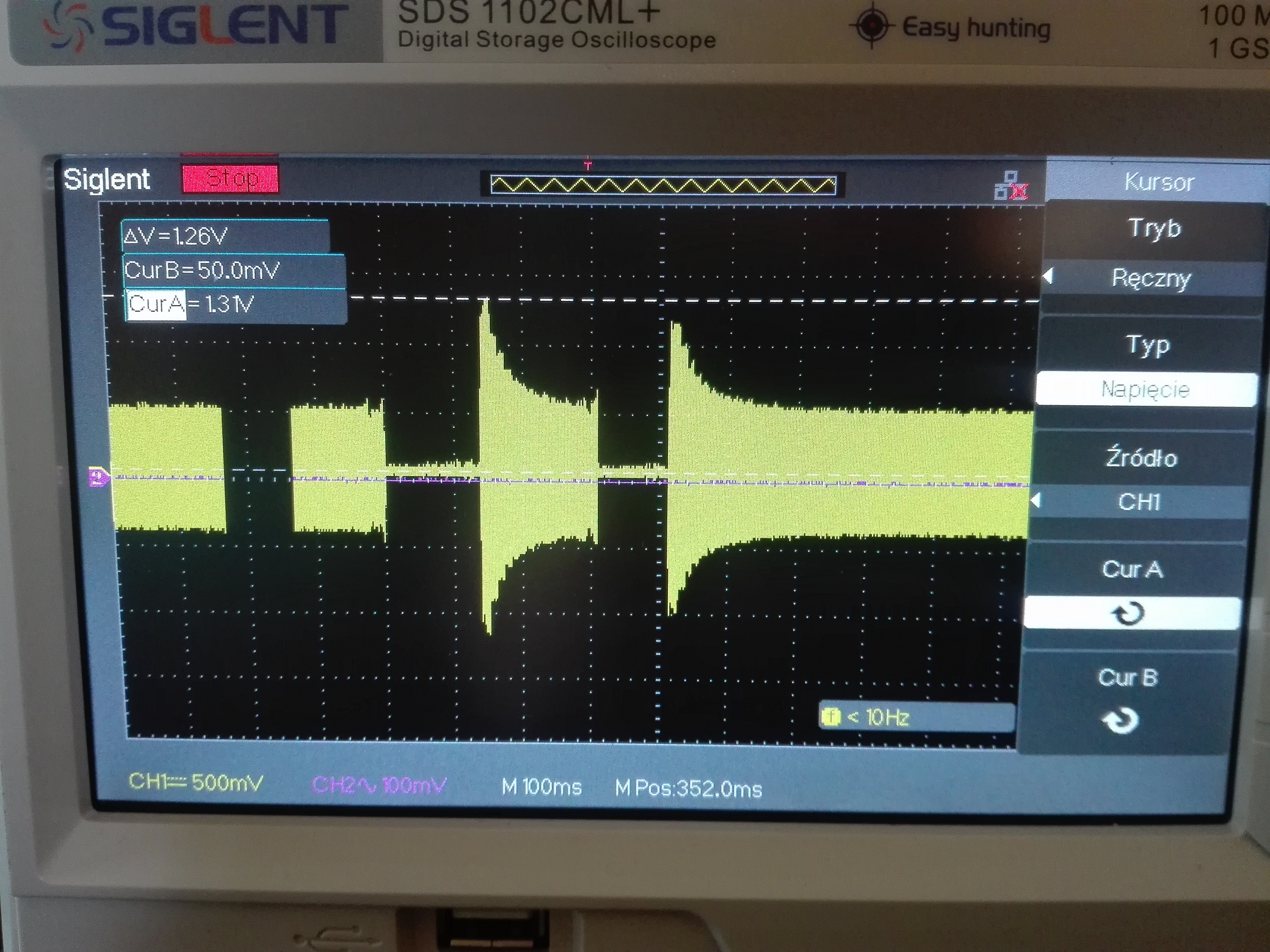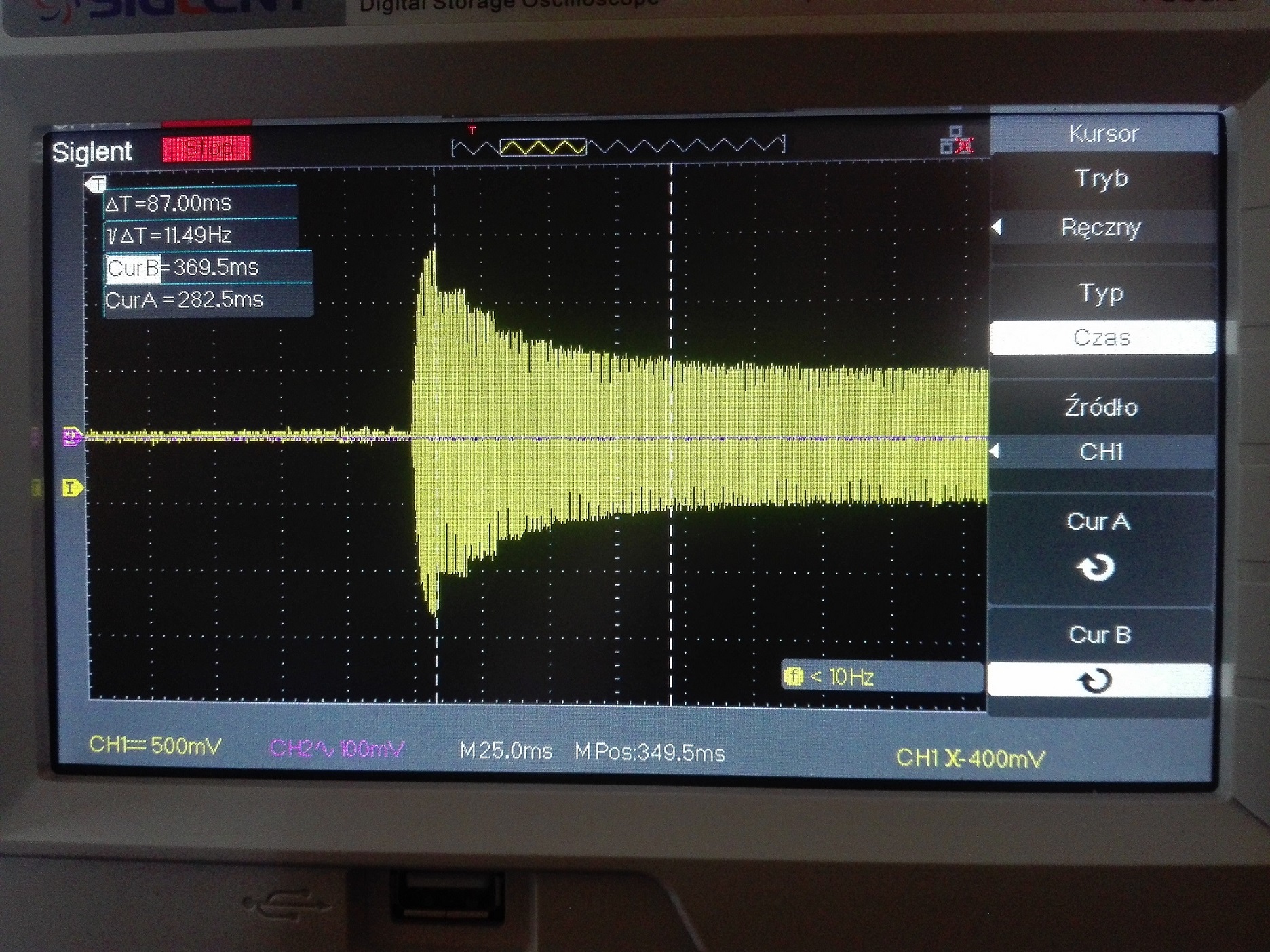 Do wyjścia głośnikowego podłączyłem oscyloskop cyfrowy.