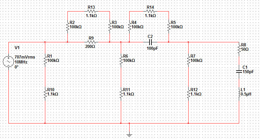 W zależności od tego, czy mierzona impedancja jest bliska 0 (w symulacji dałem tam kondensator 100nF i F=70MHz), czy też duża (w symulacji dałem tam rezystor 2k) rozpiętość mierzonych napięć była od ~74uVrms do 640mVrms. To daje potrzebną dynamikę pomiaru na poziomie ~79dB.