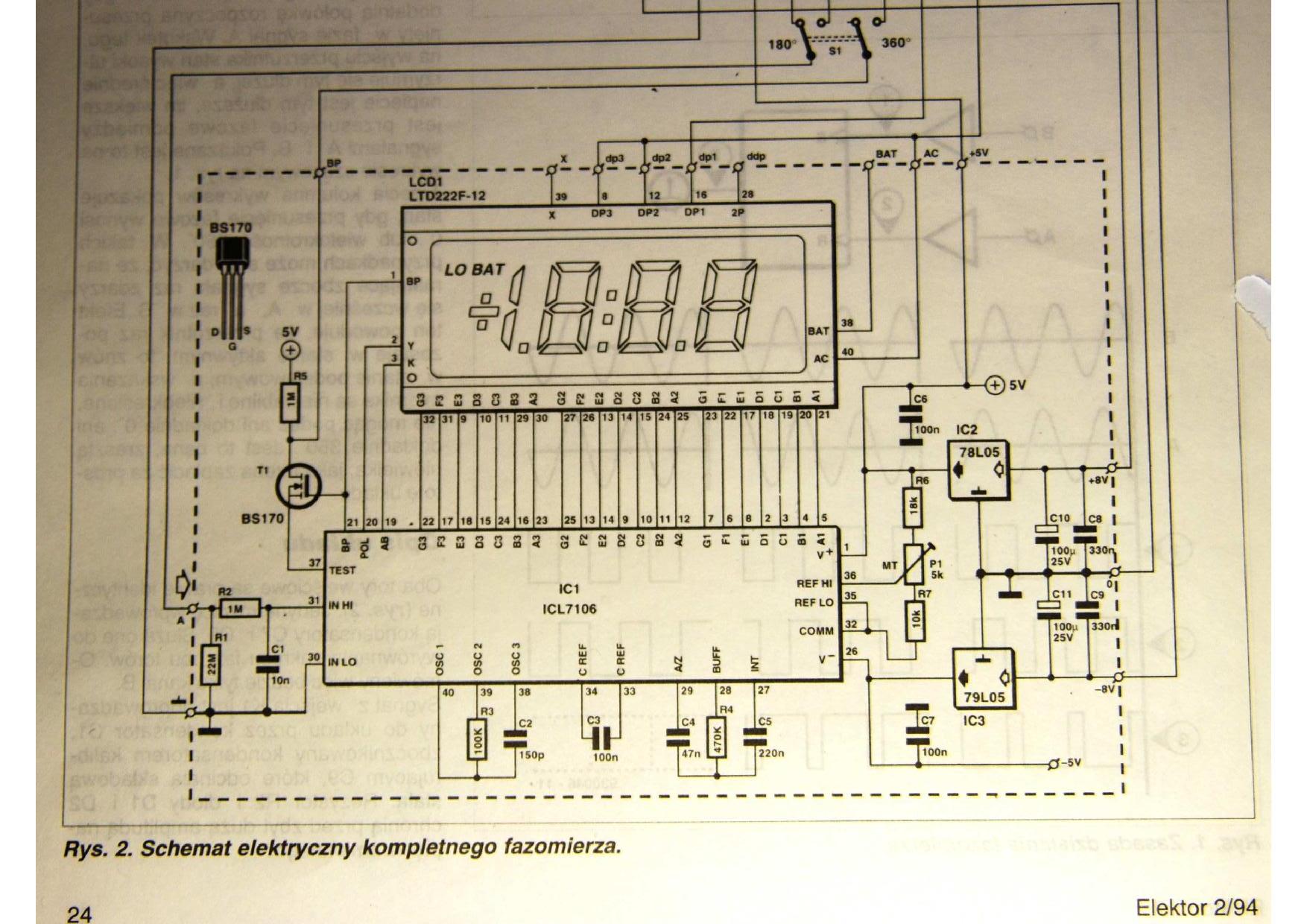 - impuls pomiarowy (5) mierzony jest w mikrokontrolerze przez pomiar impulsów zegara wewnętrznego (6) a następnie przeliczony na wartośc fazy i wyświetlony na wyświetlaczu na pierwszej pozycji