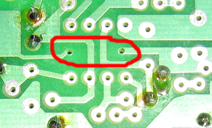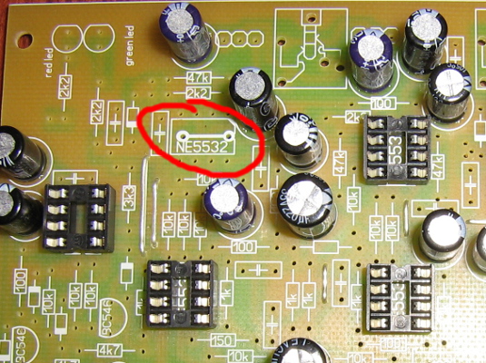 Mianowicie pod układem NE5532 powinna być zworka, przynajmniej tak wynika z opisu na płytce. Niestety po drugiej stronie brakuje pól lutowniczych - ścieżki "urywają się" przy otworach. Gdzie jest błąd? Zworka powinna być wlutowana, czy też nie?