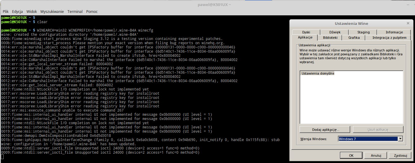 Poniższe kroki są opcjonalne i należy je wykonać jeżeli instalacja pod domyślną wersją WINE się nie powiedzie.