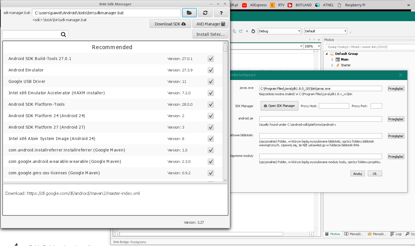 Na tym etapie mamy już zainstalowane wszystko co potrzebne do uruchomienia B4A. Pora teraz na konfigurację środowiska.