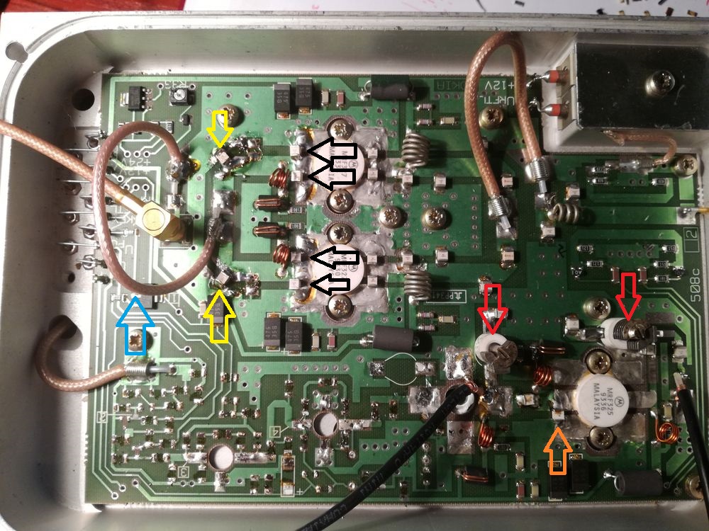 Problem jest z drugim stopniem, nie mogę sobie poradzić z dostrojeniem obwodów wejściowych. Pierwotnie były nastrojone w okolicach 470MHz.