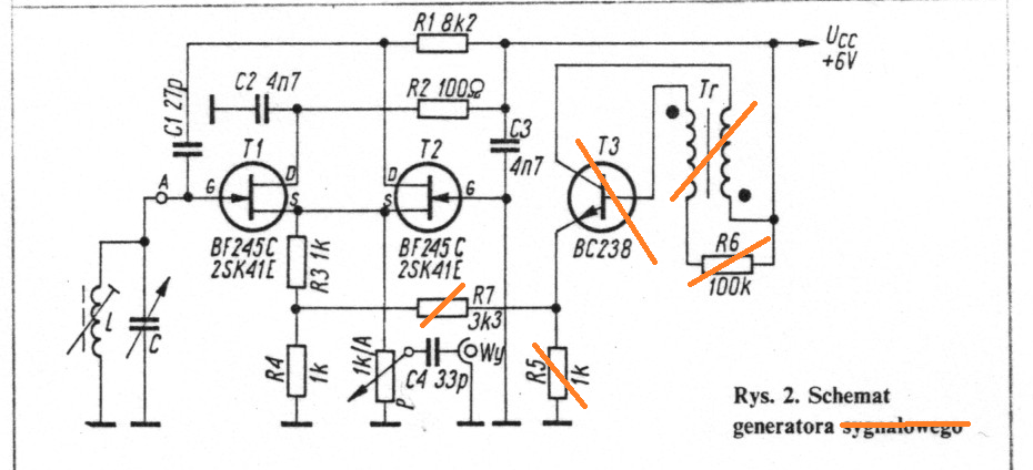 Ważne jest, aby ten generator miał oporność wyjściową 50 omów. Ten warunek spełnia większość schematów generatorów VFO przeznaczonych do współpracy z mieszaczami diodowymi - schematów w sieci jest dużo. Pewien kłopot będziesz miał w poszerzeniu zakresu przestrajania