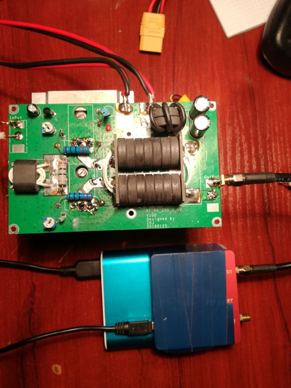 widać że po potraktowaniu PA skrzynką antenową na wejściu wychodzi pełna moc, bez skrzynki prawie zero.