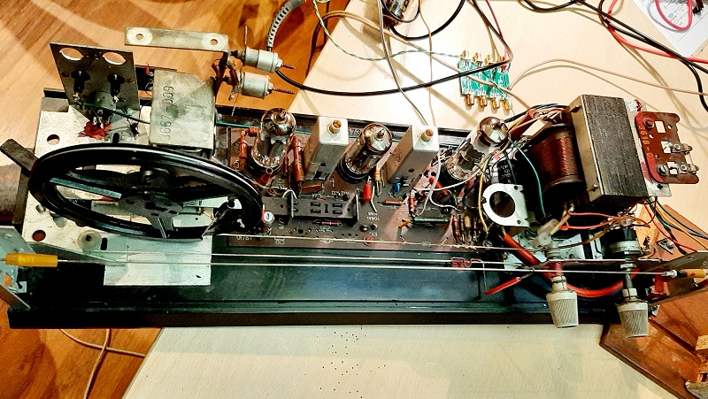 Kolejne elementy do zmiany to możliwość zastosowania lepszego obwodu pasmowego na 40m oraz modernizacja zasilacza, tak by zminimalizować przydźwięk sieciowy na odbieranym sygnale, co było największym wyzwaniem. Generalnie wiążę się to z wymianą prostownika z selenowego na diody i wymianą kondensatorów elektrolitycznych w układzie zasilania. Dzięki tej ostatniej zmianie zostaje wygospodarowany uchwyt na zabudowę demodulatora (po demontażu starego kondensatora elektrolitycznego). Elementy z pasma fal długich i średnich zostały zdemontowane.