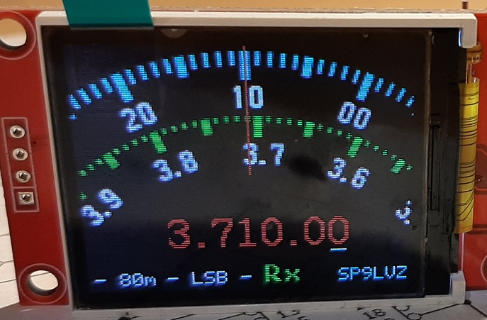 Dodałem do kodu programu gotowe opcje zmiany koloru wyświetlanej częstotliwości, bo oryginalne ustawienie - kolor czerwony na czarnym tle trochę mnie drażnił. Są wpisane opcje: żółto-zielony, pomarańcz i jasno niebieski... oczywiście można ustawić wg uznania dowolny inny..
