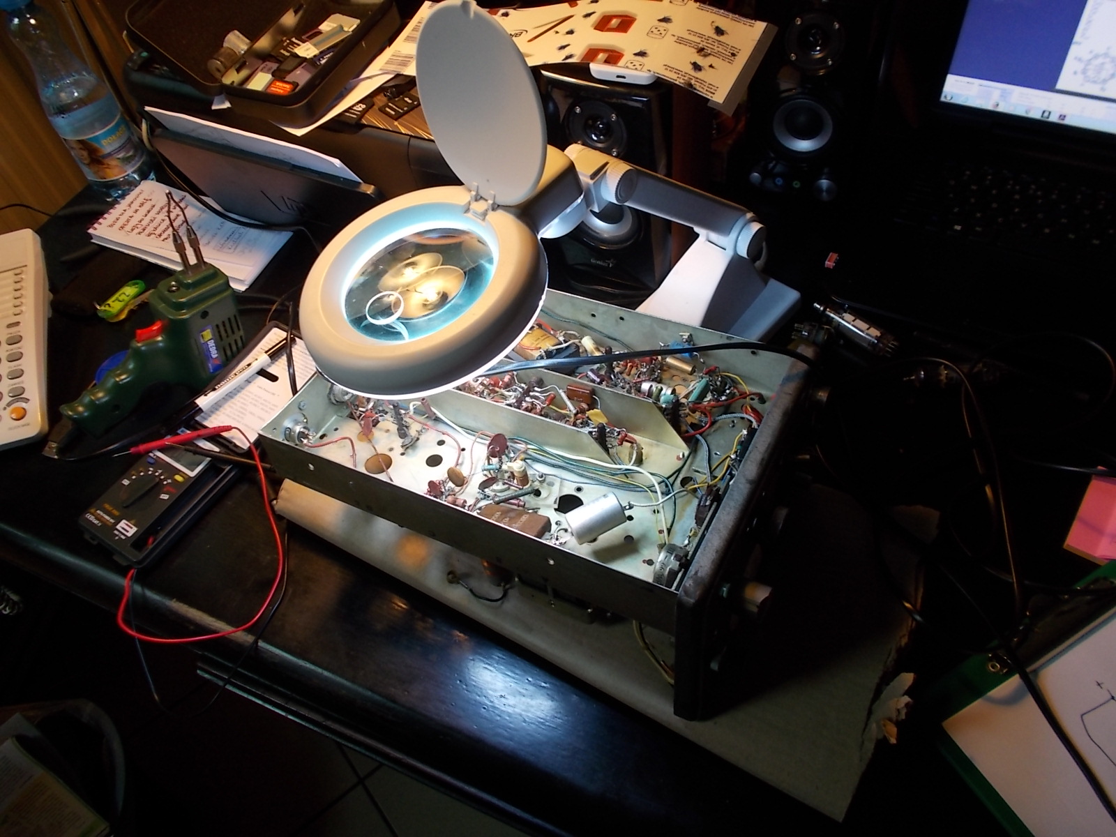 ) że konstruktor dodał dwa stopnie wzmocnienia czego na pierwszy rzut oka nie zauważyłem. myślałem że użył tu "pół lampy" i z tamtej drugie "pół" bo tak wygodniej. Ale gdy wziąłem się za nadajnik to okazało się że jest dodany dodatkowy driver na EF80 i dodatkowy przedwzmacniacz na ? No właśnie...