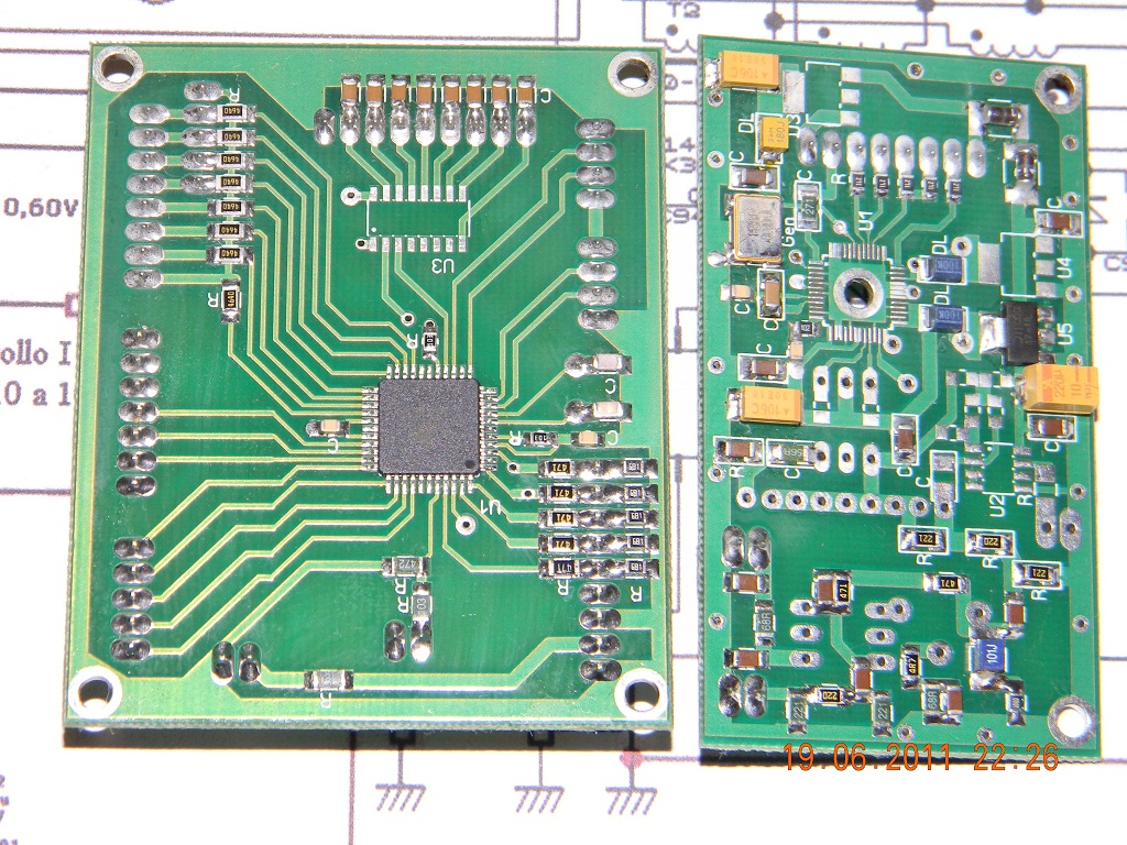 Wykonana synteza w oparciu o AD9951 na 2 płytkach możne robić nam "psikusy". Najczęstszym kłopotem z tą synteza jest jej wyłączanie się gdy zapalamy nad stołem świetlówkę (żarówkę energooszczędną) bądź w pobliżu płytki "pstrykniemy" lutownicą transformatorową. Im dłuższe przewody łączące płytki sterownika i syntezy tym wada występuje częściej.