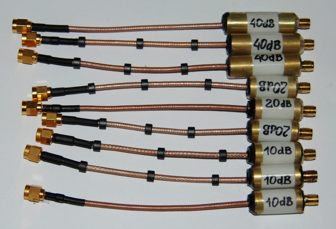 Stałe tłumiki pod złącza SMA wykonuję tak jak na zdjęciu. Taka technologia daje możliwość wykonania dowolnego tłumika i jego kalibrację.