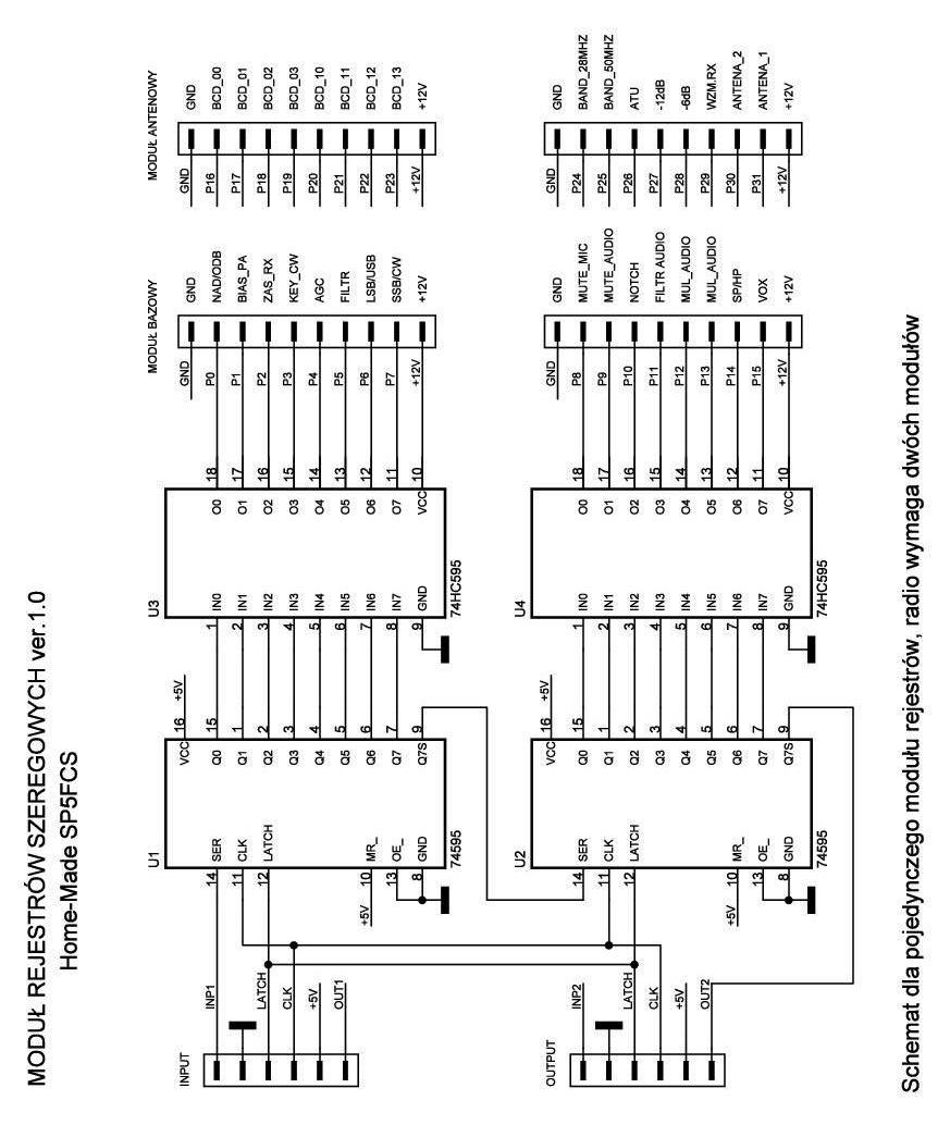 W załączniku projekt płytki rejestrów szeregowych 74HC595 do sterowania konfiguracją radia.