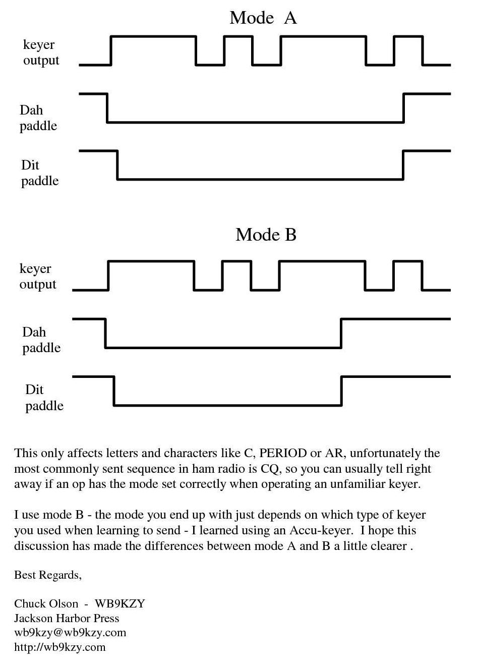 Drugim źródłem kluczowanie jest manipulator 2-dzwigniowy na oddzielnych pinach procesora. Klucza pracuje w MODE B, czyli rozpoznaje i pamięta wciśnięcie dźwigni w czasie generowania przeciwnego elementu znaku po czym nadaje ten element znaku. Stosowne opisy znajdziemy w sieci lub w załącznikach do tego postu.