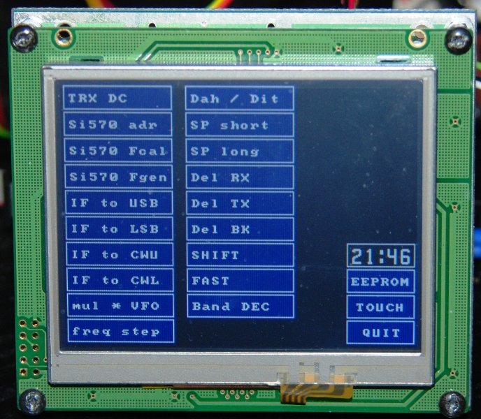 Na ekranie konfiguracji (pierwsze zdjęcie) pojawił się kolejny klawisz z opisem RTC. Służy on do ustawiania aktualnego czasu zegarka za pomocą głównego enkodera. Obrót enkodera w prawo przestawia czas do przodu, obrót w lewo do tylu. Każde 2 impulsy enkodera to 1 minuta nastawy, po przepełnieniu minut zmienia się godzina.