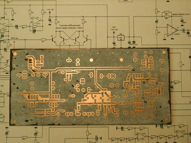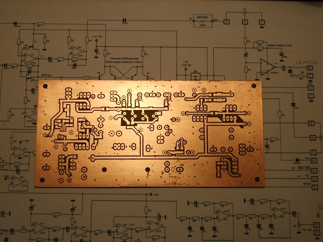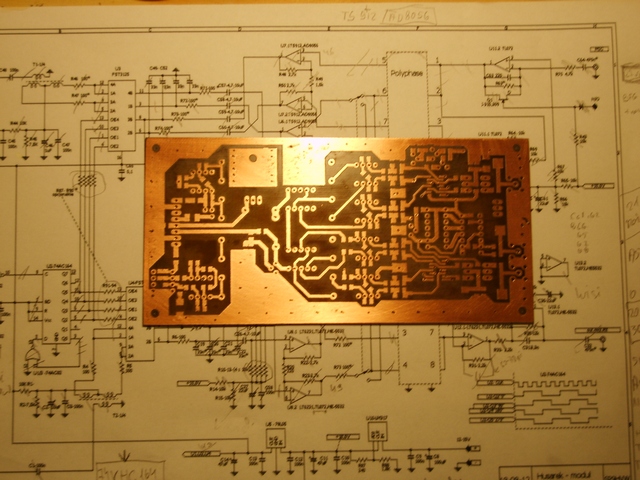 Po raz pierwszy pojawiam się na forum HM. Budowę TRX zaczynałem od urządzeń lampowych, potem nastąpiła era tranzystorów i wreszcie układy scalone .Wszystko to były urządzenia z filtrami kwarcowymi,dlatego zainteresowała mnie homodyna. Losy HUSARA i HUSARKA śledzę od początku. Po rozmowie ze Zdzisławem SP4HKQ zdecydowałem się na budowę HUSARKA. Przedstawiam swój pierwszy "wyrób" płytka automatyki.Płytka jest dwustronna.Zdjęcia przedstawiają poszczególne etapy :naprasowanie druku, retusz i płytka po wytrawieniu. Jest też i płytka homodyny.