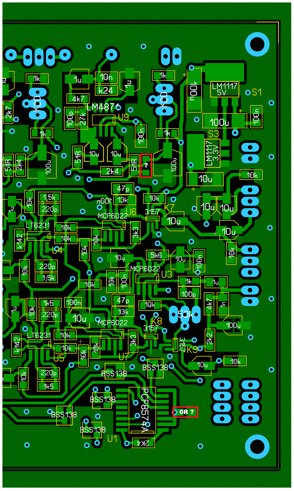 Na pcb radiowej znalazłem 3 elementy bez opisu.Domyślam się patrząc na schemat,że dwa z nich to mogą być zwory lub rezystory 0R.Tak je oznaczyłem na plikach.Proszę o potwierdzenie lub zaprzeczenie.Jest jeszcze jeden element,którego na schemacie nie mogę zlokalizować.Zaznaczony przy rezystorze 51R.Czy to miejce należy zostawić wolne czy może brakuje tam rezystora 2k4?Tak jest przy drugim lm4871 ale na schemacie nie.Wiem,że pisałeś,że schemat najważniejszy ale ktoś ten element umieścił na pcb więc może ma jakieś znaczenie?