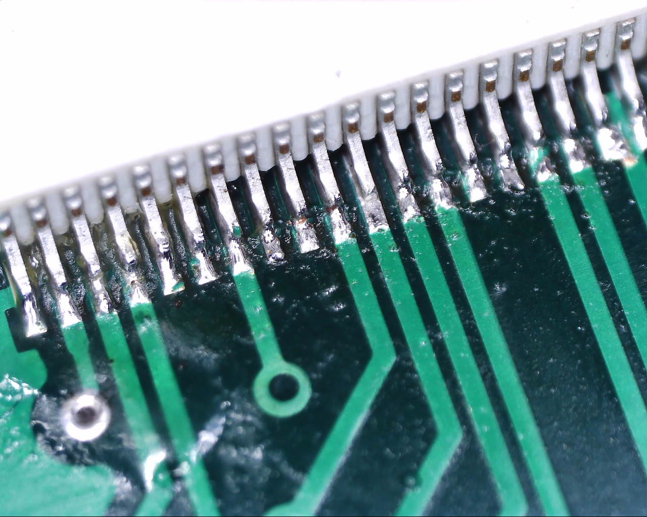 Do sprawdzenia lutowanie złącza FPC - na płycie głównej i na panelu przednim.