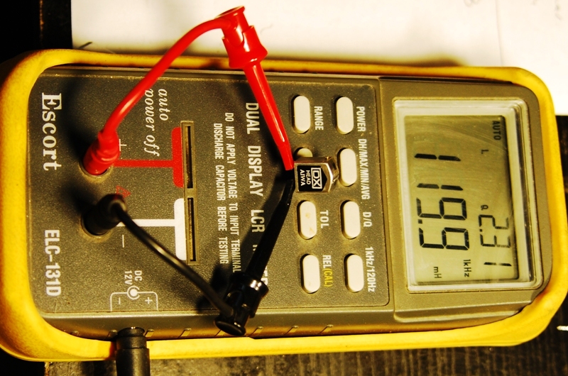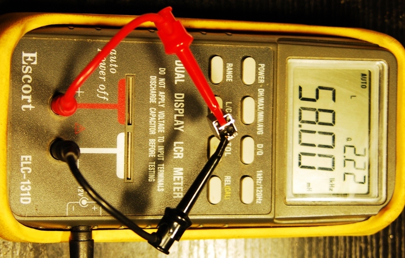 Na zdjęciu jedna z badanych głowic oraz pomiar na Escorcie (1 cewka, dwie szeregowo, dwie równolegle), przy okazji test zakresu pomiarowego miernika.