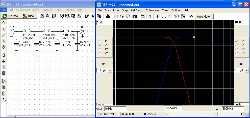 Ponizej obrazki dla LPF i NWT do 35 MHz, do 75MHz i dla przedstawionego w ukladzie kolegi ;-)