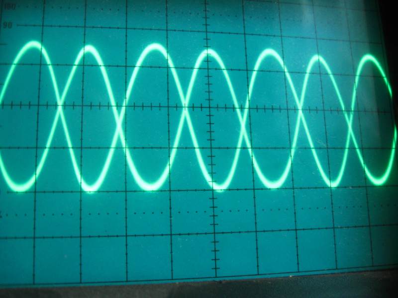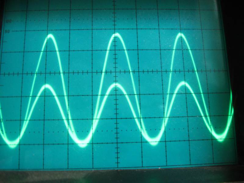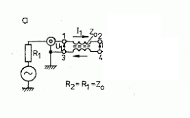 Zgodnie z tym schematem podpiąłem moje baluny do układu. R1=50 omów, R2=100 omów. Za pomocą oscyloskopu mierzyłem napięcia jakie się odkładają na rezystorach. Na pierwszy ogień poszedł balun prądowy czyli 6 zwojów rg58.