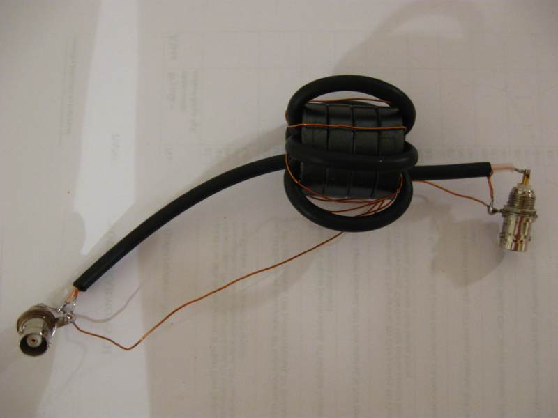 Balun numer dwa, to 6zwojów koncentryka z linią sprzęgającą -> 6 zw. drutu DNE. Taki balun jest bezapelacyjnie napięciowy: