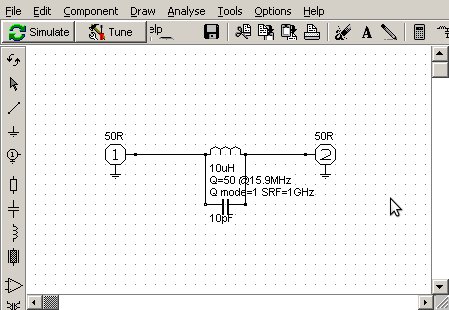 Zastanawiając się jak inaczej można zmierzyć jakość obwodu z możliwie dużą powtarzalnością, chciałbym zaproponować metodę pomiaru opartą o pomiar strat (tłumienia) wnoszonego przez obwód. Nie mając dostępu do analizatora, postanowiłem "przećwiczyć" układ w symulatorze.