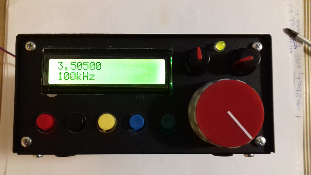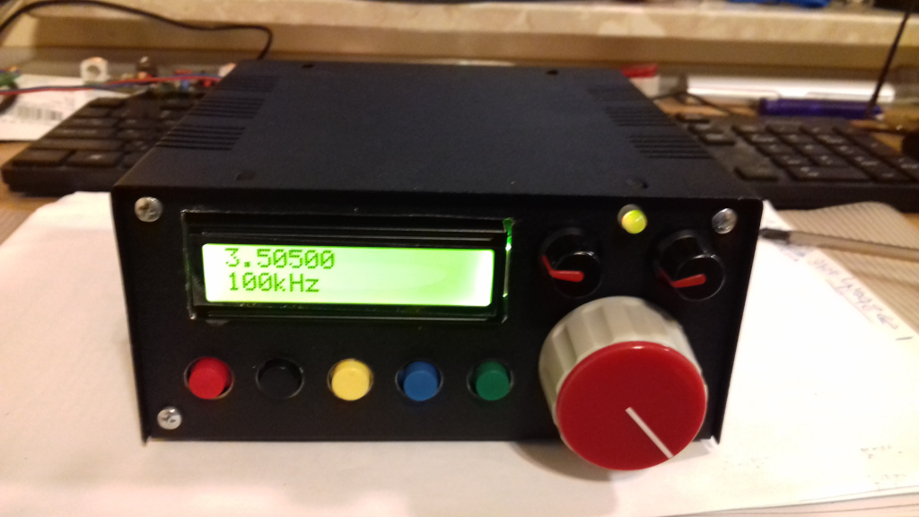 Wstawiłem już nawet układ do obudowy, do kompletu brakuje atrapy ale muszę z tym poczekać. Na płytce muszę jeszcze zamontować układ wzmacniacza m.cz., bo dostałem je dopiero dziś ale przede wszystkim muszę dokończyć oprogramowanie układu. Niemniej działa już podstawowy generator i zmiana kroku przestrajania. Działa mi też wobulator - jako druga funkcja układu. Do kompletu brakuje mi funkcji konfigurującej generator (mnożniki częstotliwości, parametry przemiatania w funkcji wobuloskopu) oraz kosmetyka.