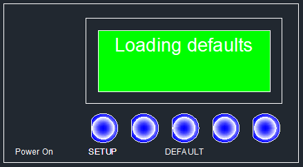 Trzymając środkowy klawisz podczas włączenia zasilania ustawia się wartości domyślne a więc 2 pasma, częstotliwość początkową 3.5MHz oraz częstotliwość pośrednią Fmid=0MHz. Potwierdzeniem tego jest napis na wyświetlaczu "Loading default". Te ustawienia, jak i inne w sekcji SETUP są zachowane w pamięci nieulotnej procesora i odczytywane z niej podczas każdego kolejnego startu