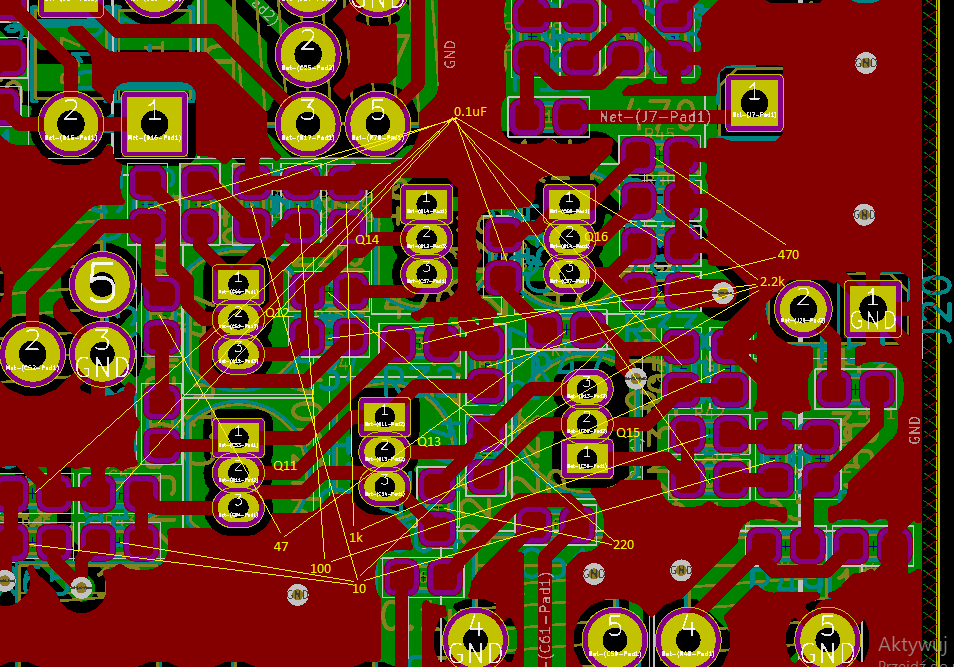 Na tym etapie nie było żadnych niespodzianek w montażu. Oznakowania tranzystorów na płytce są prawidłowe.