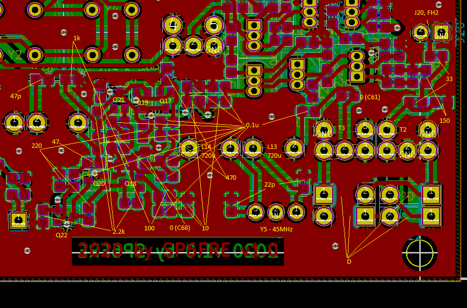 A w zakresie prób praktycznych to sprawdziłem jak działa nadawanie cw. Sygnał na wyjściu z płytki to ok. 150mV pp (60uW).