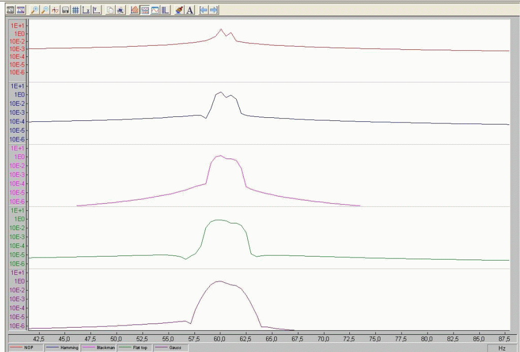 Dodałem dwa załączniki w pierwszym rysunku widać wpływ okien widmowych, ten największy sygnał z wysoką "podstawą" zreszto "kołyszącą się" to sygnał bez okienkowania za to z wyciekiem widma (szkodliwe), pozostałe wykresy, właczone funkcje okienkujące (różne). Warto zauważyć że okienkowanie zmniejsza czułość ale zawsze w ten sam sposób, we względnych pomiarach nie stanowi to problemu. Drugi rysunek jak okienkowanie pozwala odróżnić dwa bliskie siebie sygnały. Według mnie projektu nie warto odtwarzać a wykorzysyać do tego sdr-a. Argumenty za poddane. Na drugim wykresie dolny wykres bez okienkowanie, pozostałe z różnymi funkcjami okienkującymi.