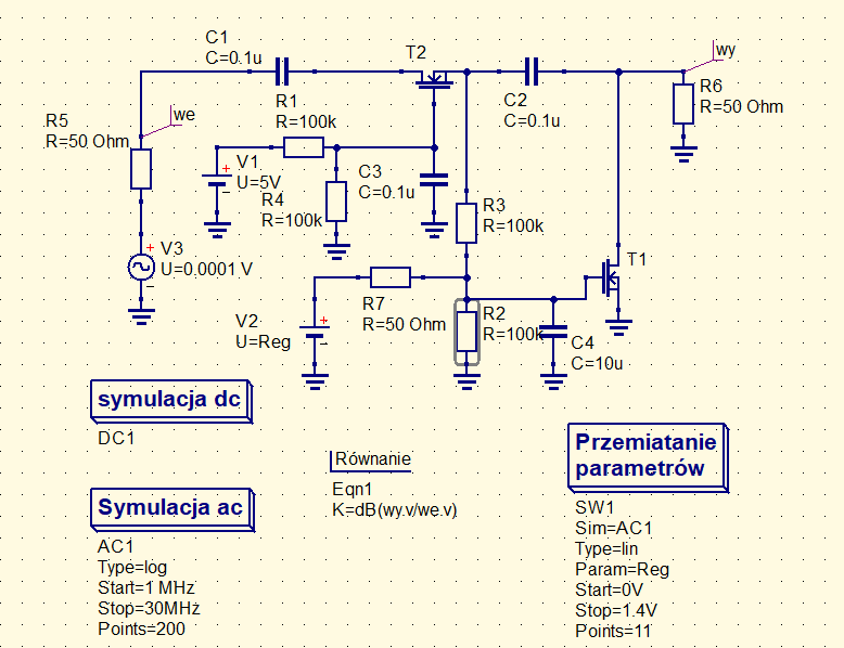 Na rysunkach pokazałem symulację Kickad tego układu gdzie widać jak napięcie m.cz. steruje tłumieniem całego układu w pasmie 1-30MHz. Największe tłumienie osiąga się dla niższych częstotliwości ale na niższych pasmach to tłumienie jest najbardziej potrzebne przy pracy ARW. Reg oznacza napięcie stałe po wyprostowaniu sterujące tłumieniem układu i widać, że przy poziomie ok. 1.4 V układ zaczyna działać bardzo skutecznie.