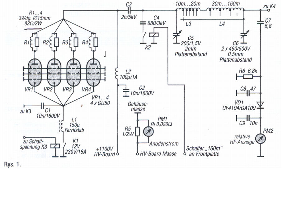 Wartosc kondensatora antenowego w PI filter ;-) jesli nawet sie to jako tako zestroi na 3,5 MHz to na 1,8 MHz zycze powodzenia, pomijam fakt ze wlasnie max 960pF antenowego , wymusi nienaturalnie doza wartosc indukcyjnosci cewki PI filtra...o ile pamietam w tym ukladzie i nie tylko w tym m.innymi w tzw PA FL500 ( tez 4xGU50) po pierwsze prad idzie, lampy sie gotuja a mocy do anteny jakos nie widac szczegolnie na 24 i 28 MHz .. .
