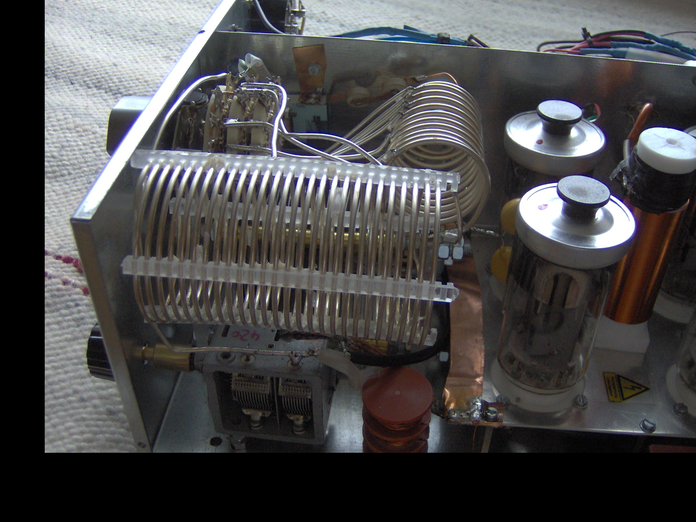 Na foto nie widze jak i z czego wykonano C blokujace napiecie andowe przy dlawiku i C sprzegajacy anody z PI filtrem ( wazne bo grorzi pozarem albo smiercia ;-)...