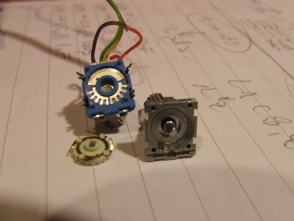 Faktycznie, trochę się namęczyliśmy z uruchomieniem tego układu a właściwie chodzi o impulsator. Ponieważ Jurek używał tego samego impulsatora co ja tym bardziej zależało mi na wyjaśnieniu tej sprawy. Załączam zdjęcia "winowajcy" w stanie rozkładu na elementy podstawowe. Impulsator jest dość tani i teoretycznie powinien działać prawidłowo ale błąd konstrukcyjny powoduje, że od egzemplarza do egzemplarza wynik może być różny. Bezpośrednim sprawcą jest sprężynka mechanizmu terkotki widoczna w korpusie w szczelinie na jego dole. Po założeniu kółka ze stykami ich wystające elementy powodują zwarcie ze sprzężynką terkotki lub zwarcie do obudowy przez docisk terkotki (nie mam do końca pewności). W każdym razie po usunięciu sprężynki - oznacza to likwiidację funkcji terkotki :-( - wszystko wraca do normy.