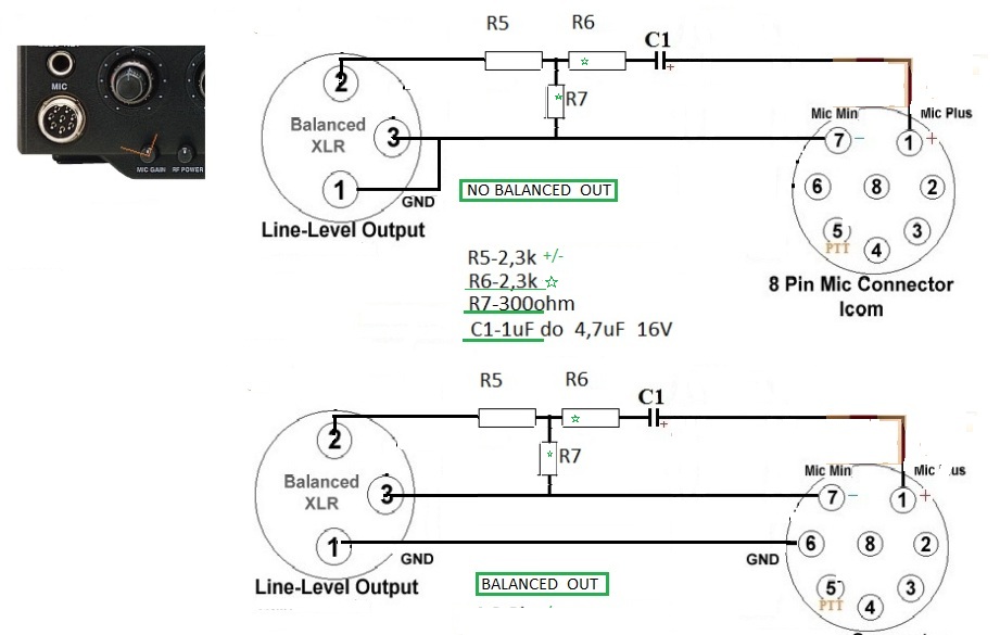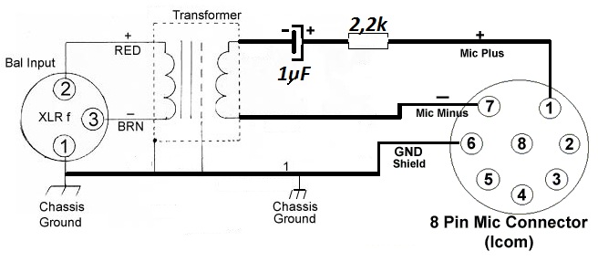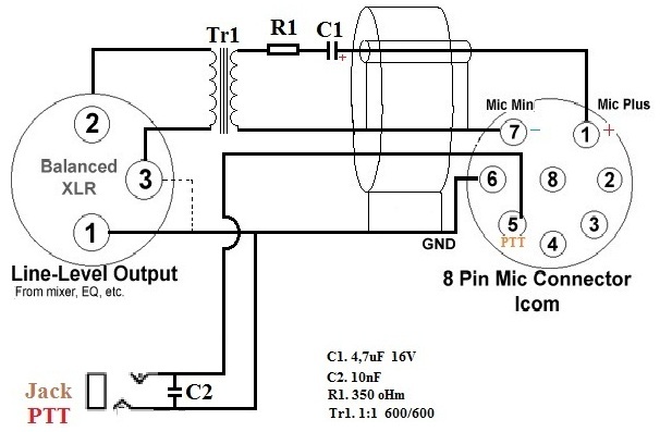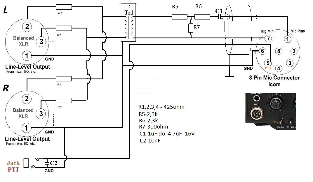 Schemat podłączenia IC-trx do urzązeń posiadających transformator na wyjściu .