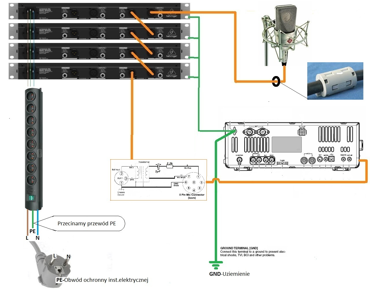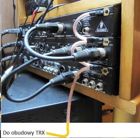 Obudowa TRX i obudowy PreAmp, EQ Limiter łączymy dodatkowym przewodem do zacisku uziemienia z tyłu obudowy TRX-a.